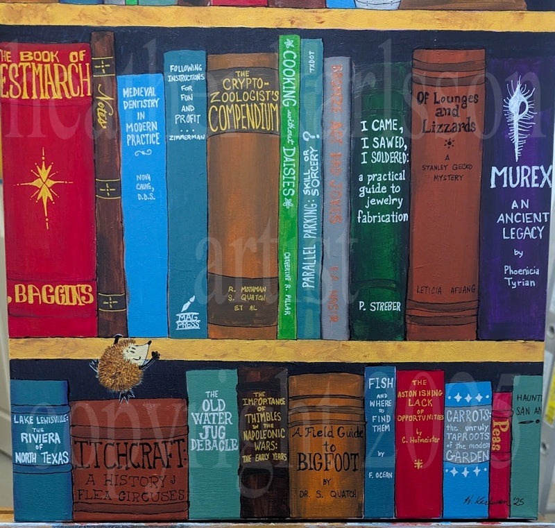 I basically created this painting as an excuse to come up with funny book titles. Some personal favorites: